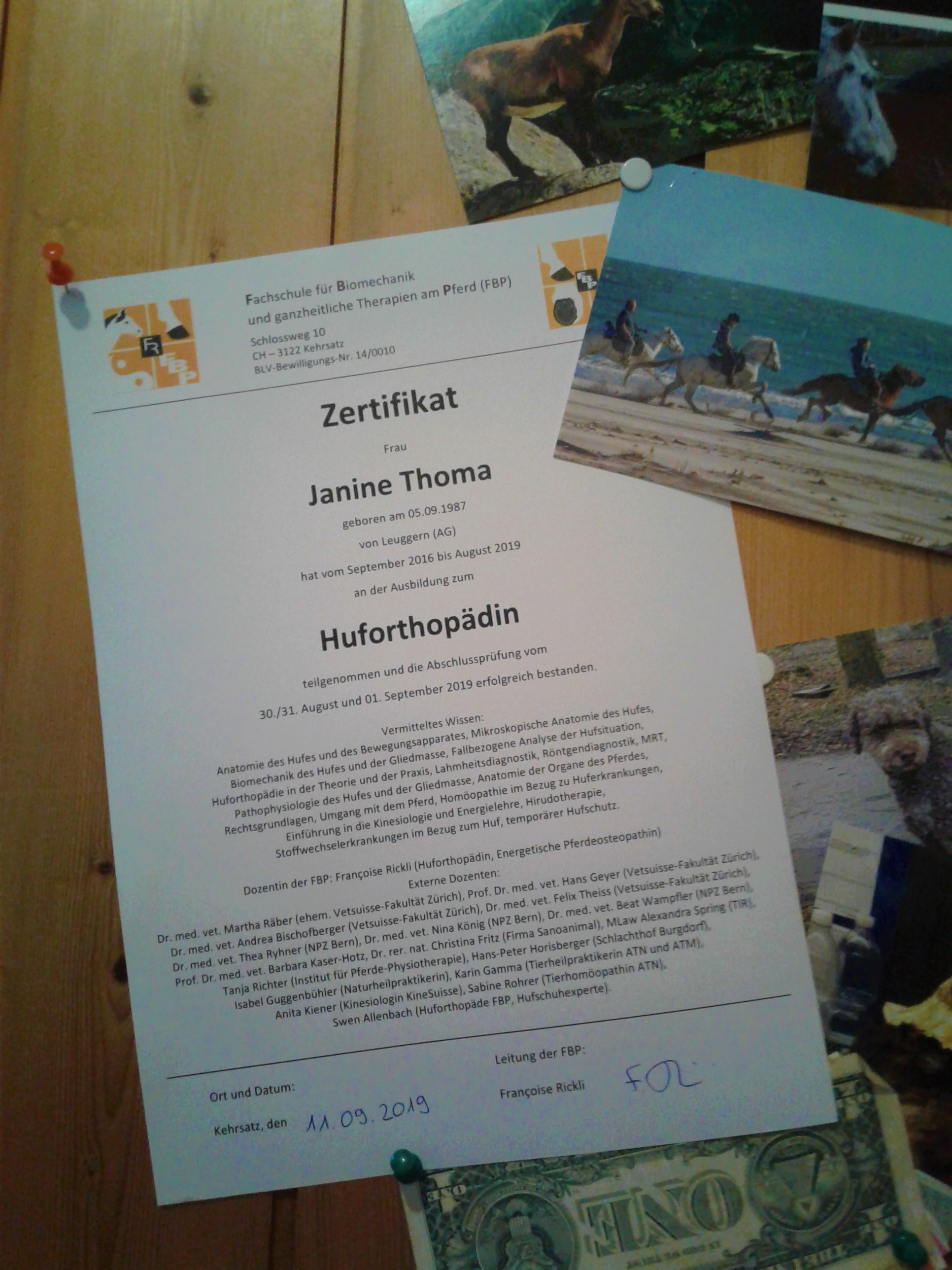 Juhuuuu, ich habe die Abschlussprüfung des Studiengangs "Pferdefachtherapeutin für Osteopathie und physiotherapeutisches Training" erfolgreich bestanden!!!