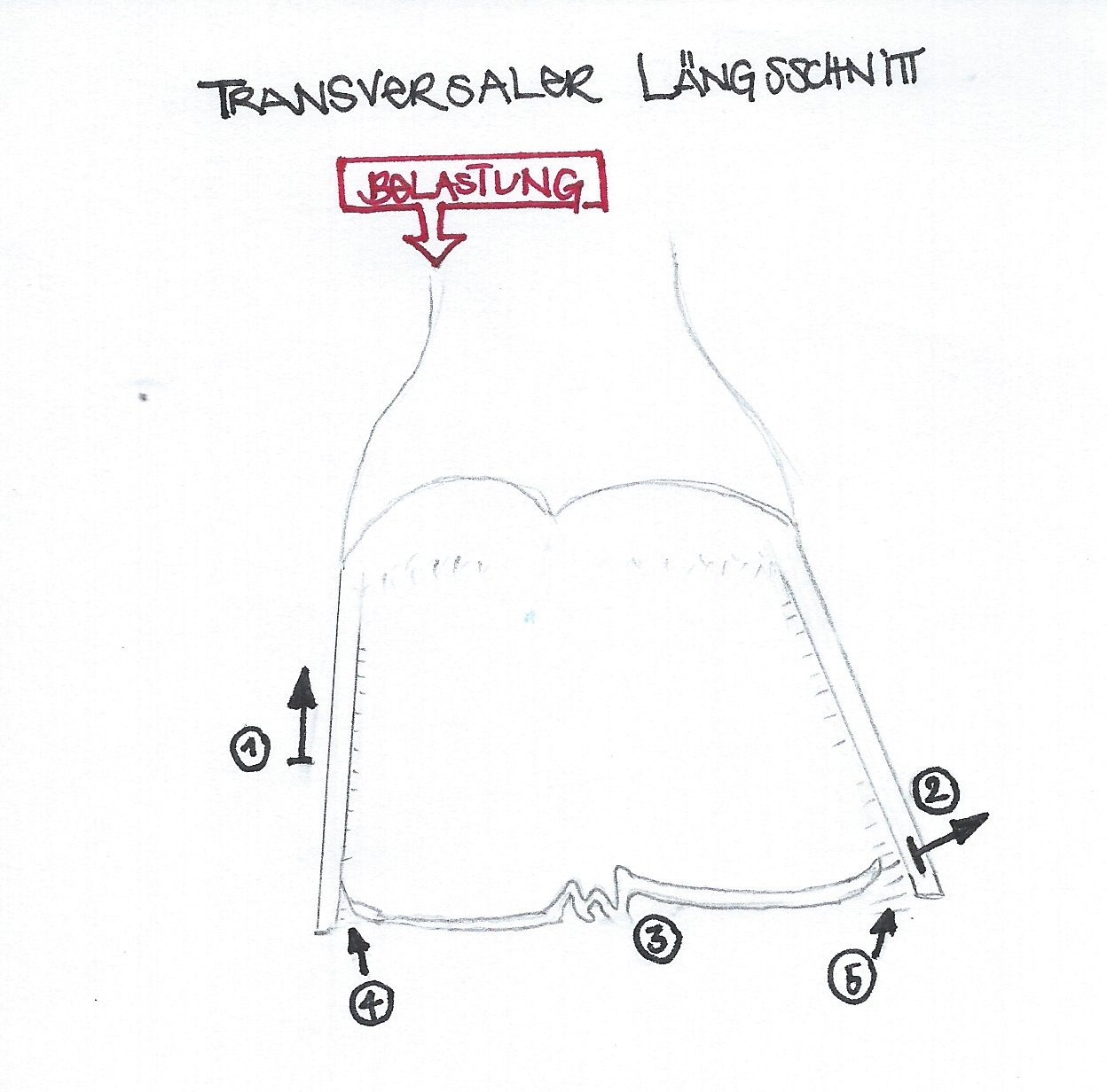 Durch die Bearbeitung werden die ungünstigen Hebelwirkungen an Seiten- und Zehenwänden minimiert und schräg zum Boden stehende Wände werden in einen tragfähigen Winkel bzw. Bogen zum Boden gebracht.