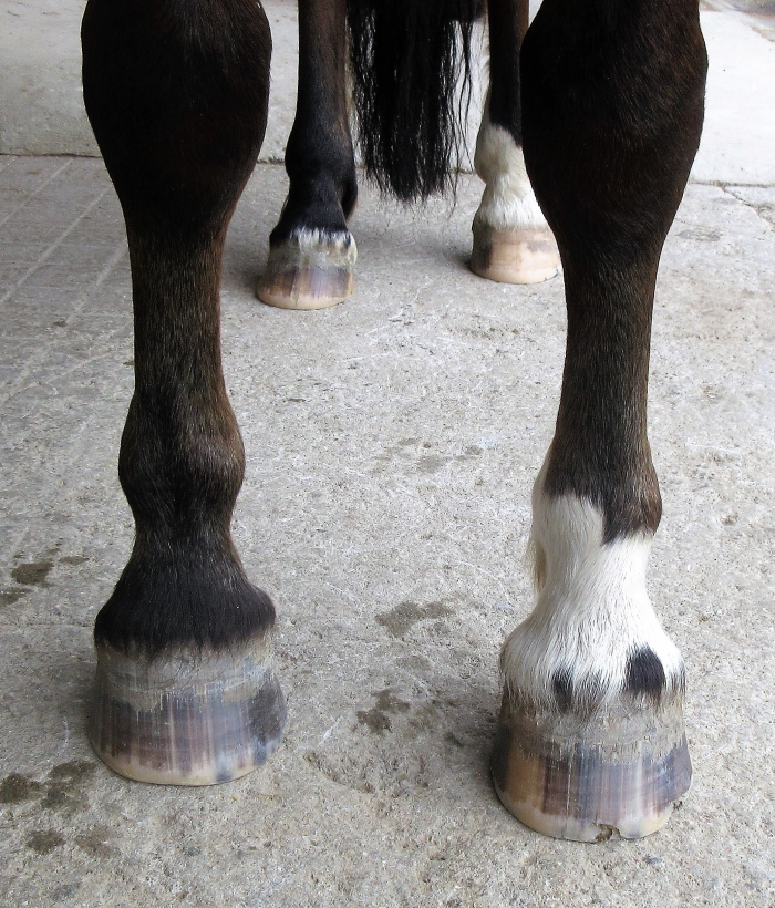 Wie beim asymmetrischen Huf sind die beiden steilen Seitenwände hohen vertikalen Scherkräften ausgesetzt. Dadurch wird der Tragrand aufgespreisselt und es können sich hohle Wände bilden.